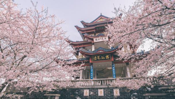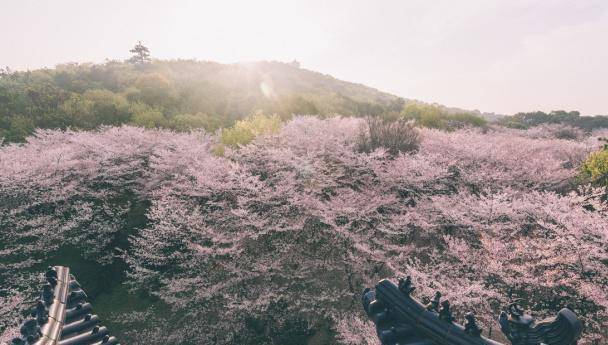 此处的樱花数量高达三万余株,占整个景区的面积约六十五万平方米,其余的少部分面积为景区内部的仿古建筑和仿日式建筑。尤其是在樱花节期间,有不少的汉服爱好者来此游玩,那一身飘飘青衣漫步于花林之间,别有一番闲情雅致,一晃神便就有一种穿越回古代的错觉。
