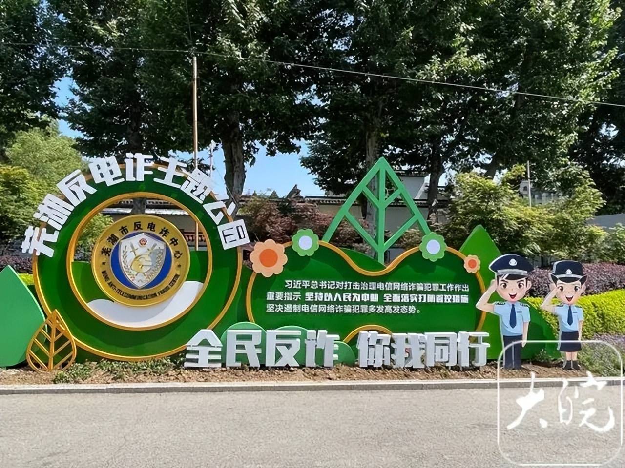 这是由芜湖市公安局打造的全省首家反电诈主题公园。为避免资源浪费兼顾宣传实效,主题公园选址在深受芜湖市民喜爱的赭山公园,同时借“干将锻剑之火映红赭山”的传说典故,寓意“全警砺剑所向披靡,全民反诈同心共力,防骗意识入脑入心,平安芜湖宜业宜居。”