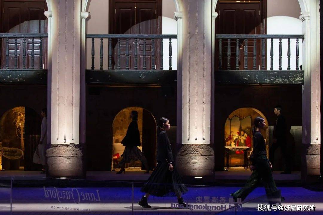 当代表长嘉汇的发言者上台,讲起大院的前世今生,天色暗下来,檐角灯光「哗」一下突然亮起,像在呼应百年前的某个璀璨片段: