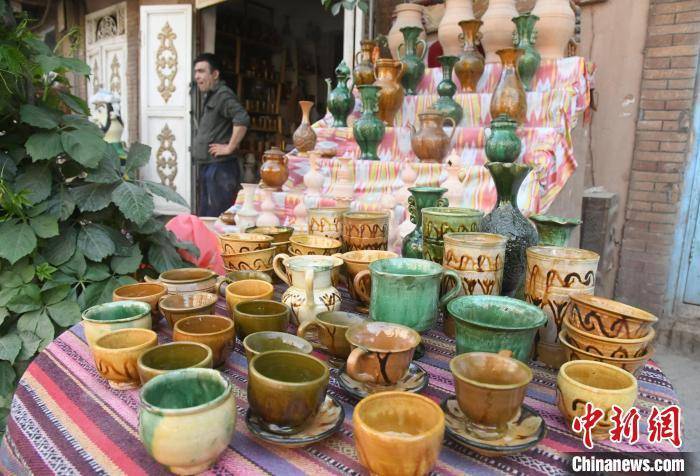 图为喀什古城里的一家土陶店展示的土陶产品。 孙亭文 摄
