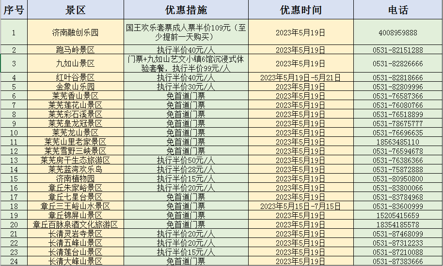原标题:5月19日,济南24家景区推出半价游或免费游活动