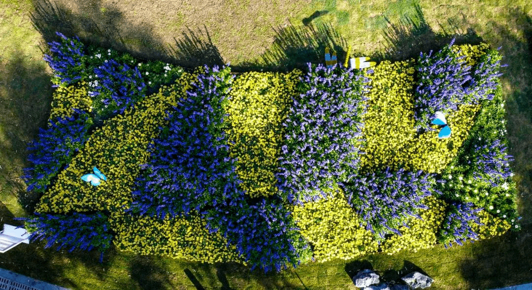 在植物的选择方面,宿根和一年生产品搭配使用,降低花卉替换的频率,达到一年种植多年观赏的效果;在颜色配置方面以黄色和蓝色为主基调,可以吸引授粉昆虫,创造更多的共生共荣,最终实现生态发展的可持续性。