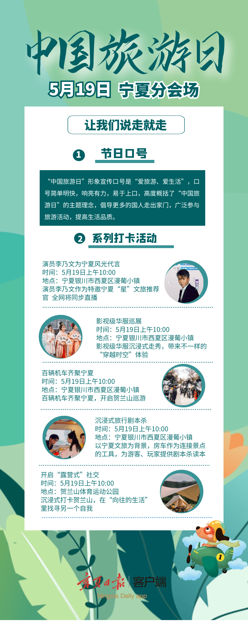 原标题:长图|李乃文等明星助力!聚焦“5·19”中国旅游日,宁夏分会场活动即将开始!