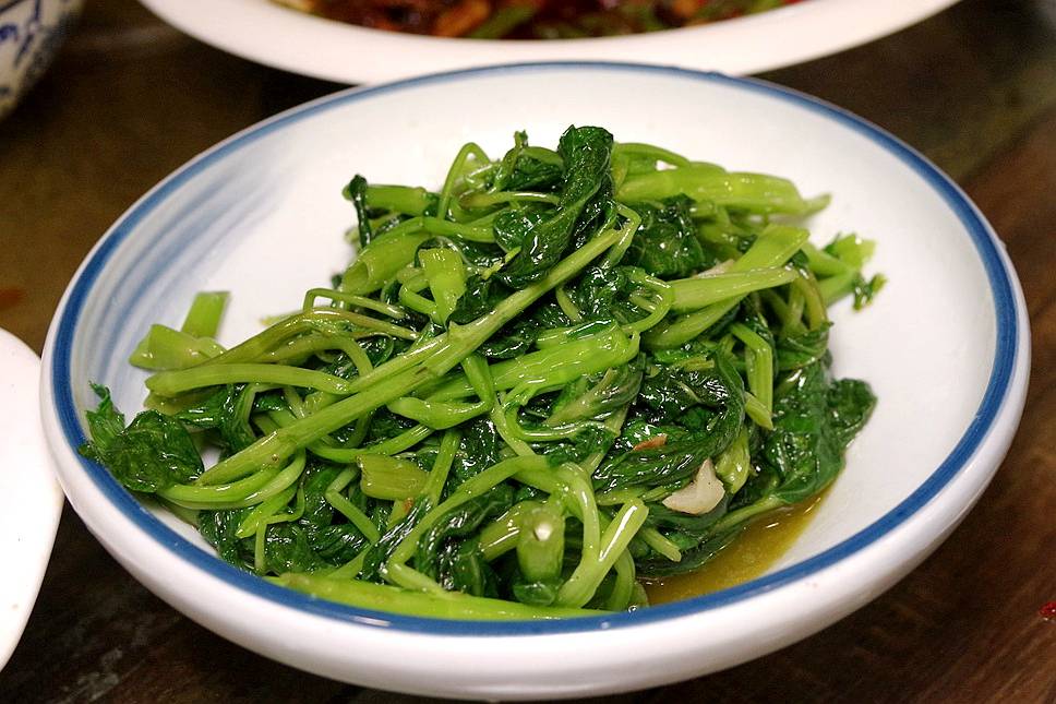 最后来个叶子菜吧,空心菜是旺火爆炒的,我的座位能看见灶台,临时加单后很快,我看见那边腾起的熊熊火光。果然,油润碧绿,炒菜就该像这样,有炒菜应有的样子。