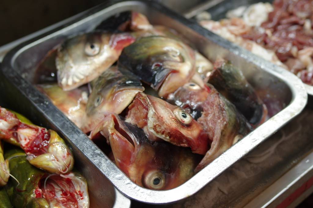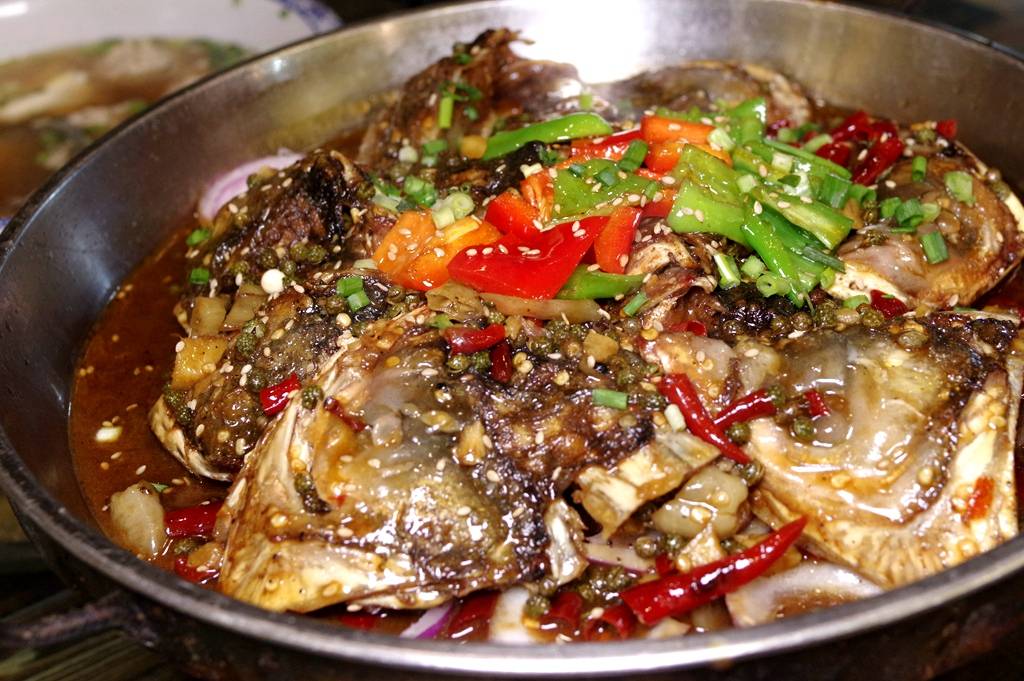 经过一番鼓捣,隔着玻璃窗看着厨师手舞足蹈忙活半天,一大盆鱼头款款登场。夹一扇尝尝,嗯,鱼皮鱼唇黏滑糯香,鱼脑香浓肥腴,鳃边肉后脑肉嫩,整盆鱼香辣且带明显的甜味。