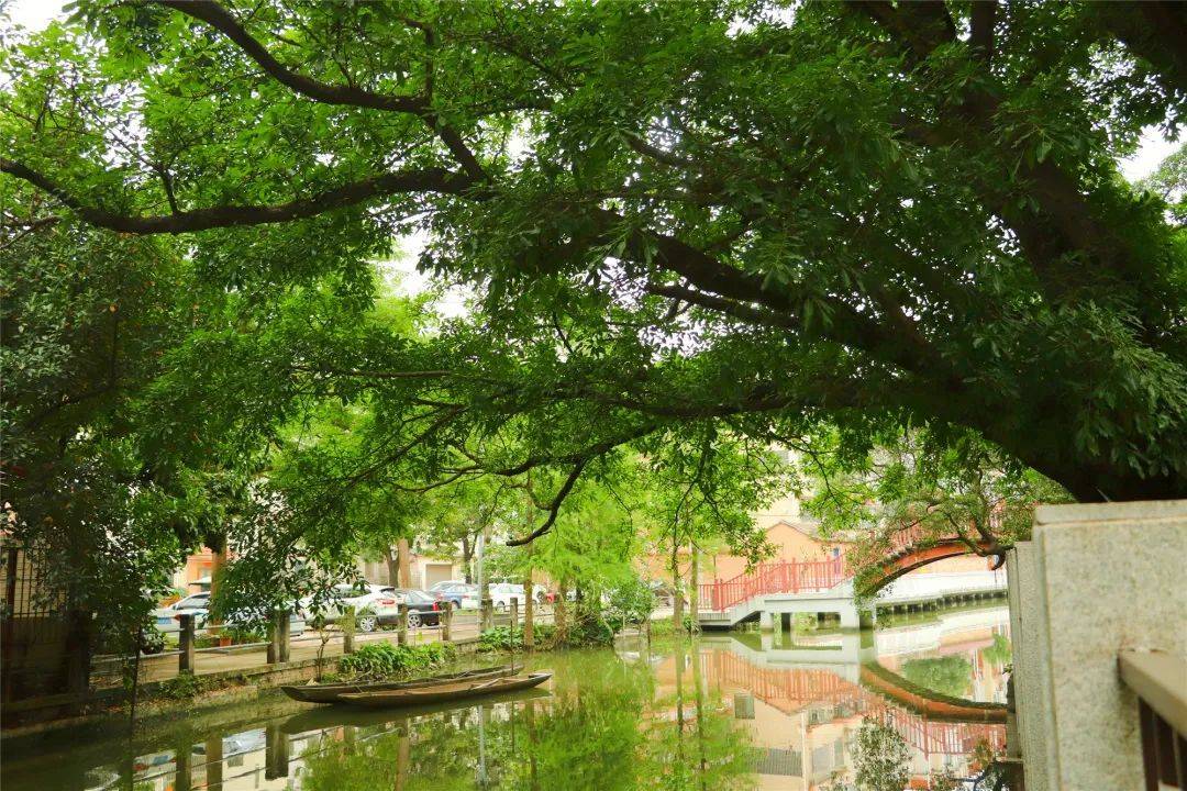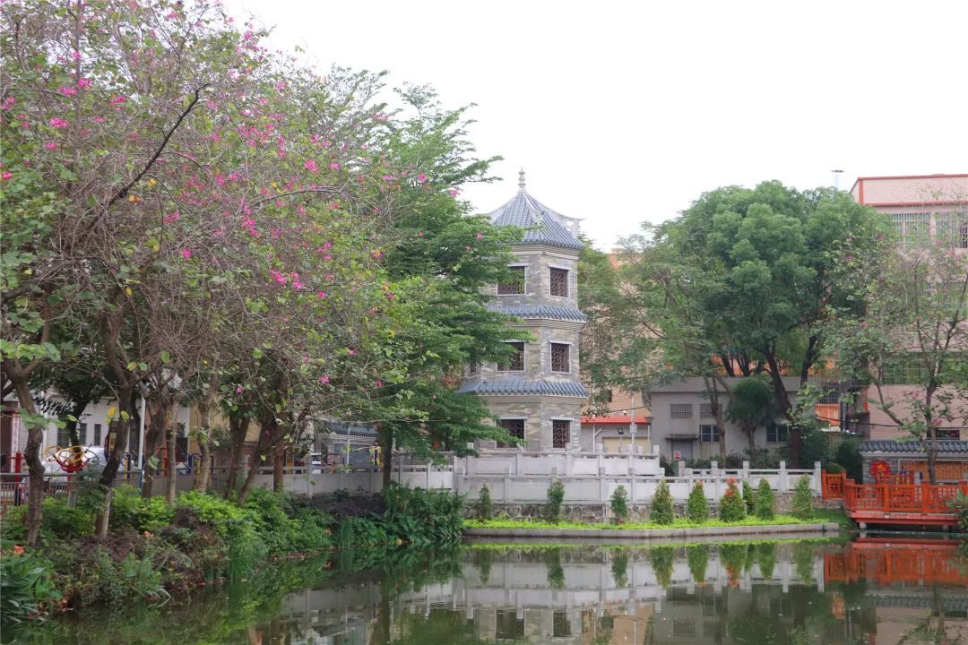 如今杜家孖祠堂周边已被改造为龙涌文化公园,绿树枝繁叶茂,与池塘、小桥流水相映成趣,焕发着新活力。