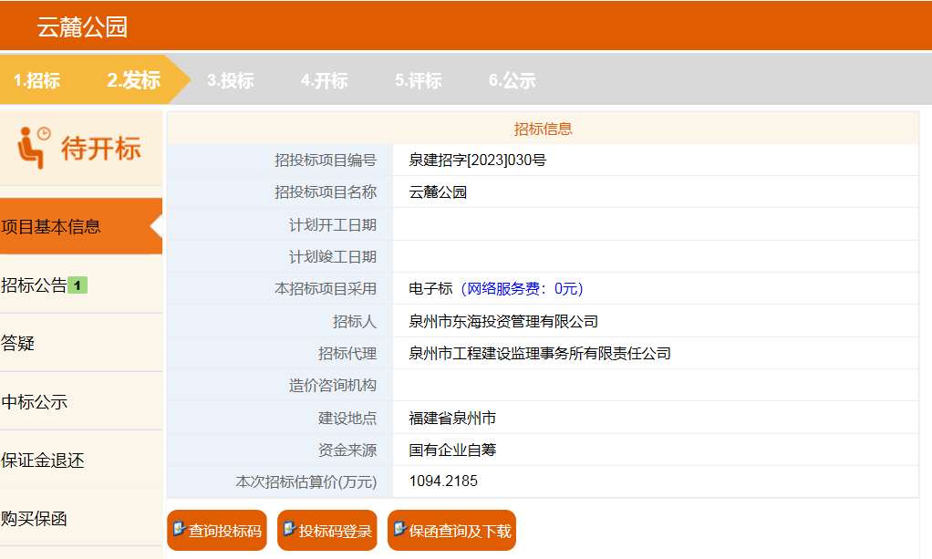 泉州公共资源交易信息网发布《云麓公园(招标公告)》。