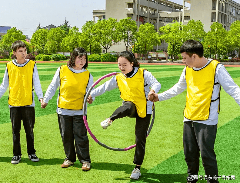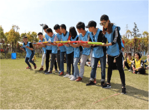 一圈到底(用时约30分钟)各组学员在一字排开的情况下,各学员手牵手,把呼啦圈从第一位学员的起点传送到最后一位学员的终点,中途道具不可离地,手不能分开,速度最快的队伍为胜利。