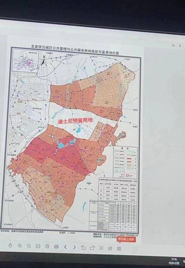 “第一,我们的基准地价只是对我们片区的价格进行一个公布,在基准地价的图上是不可能落上项目的。第二,我们所有区上的项目都是以招商部门投招引为主, 我们也及时和招商部门进行了核实,没有听说龙泉要引进迪士尼项目的情况。”龙泉驿区规划和自然资源局内部相关人士表示。