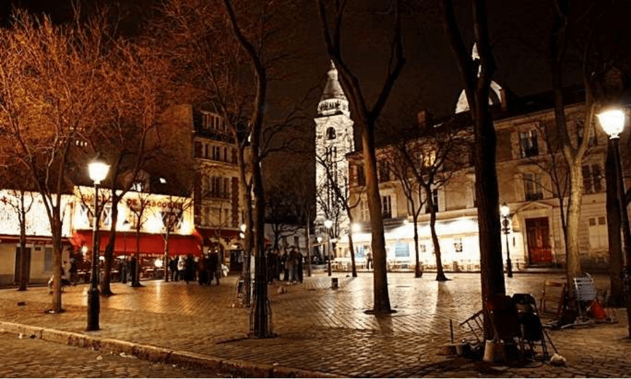 头一天我们夜游了塞纳河,领略了巴黎的美,巴黎圣母院、埃菲尔铁塔、亚历山大三世桥等无不在展示着巴黎的高超艺术,炫耀着巴黎的富有辉煌。第二天我们夜游蒙马特高地,蒙马特高地曾经酝酿出达利、梵高、雷诺阿等众多的艺术家,被誉为是巴黎艺术的灵魂之地。这天晚上大概9点多,我们一行三人来到小丘广场,时至深秋,时间又较晚,原本就不大的广场,现在已行影稀疏。