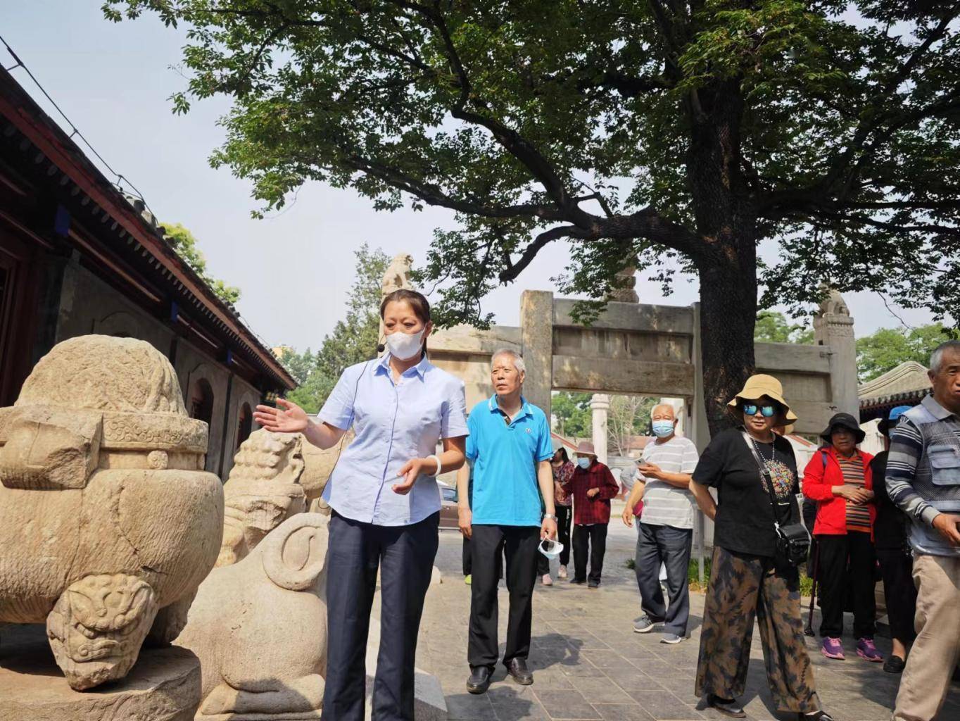 5月16日,石景山区金顶街街道模式口社区居委会联合街道综合文化中心在国际博物馆日即将到来之际,邀请辖区居民参观石景山区石刻文物园,欣赏精美的石刻,了解家门口的石刻艺术价值。石刻文物园作为模式口大街的一部分,不仅展现了城市的历史文化底蕴,也成为了一处文化活动的场所。
