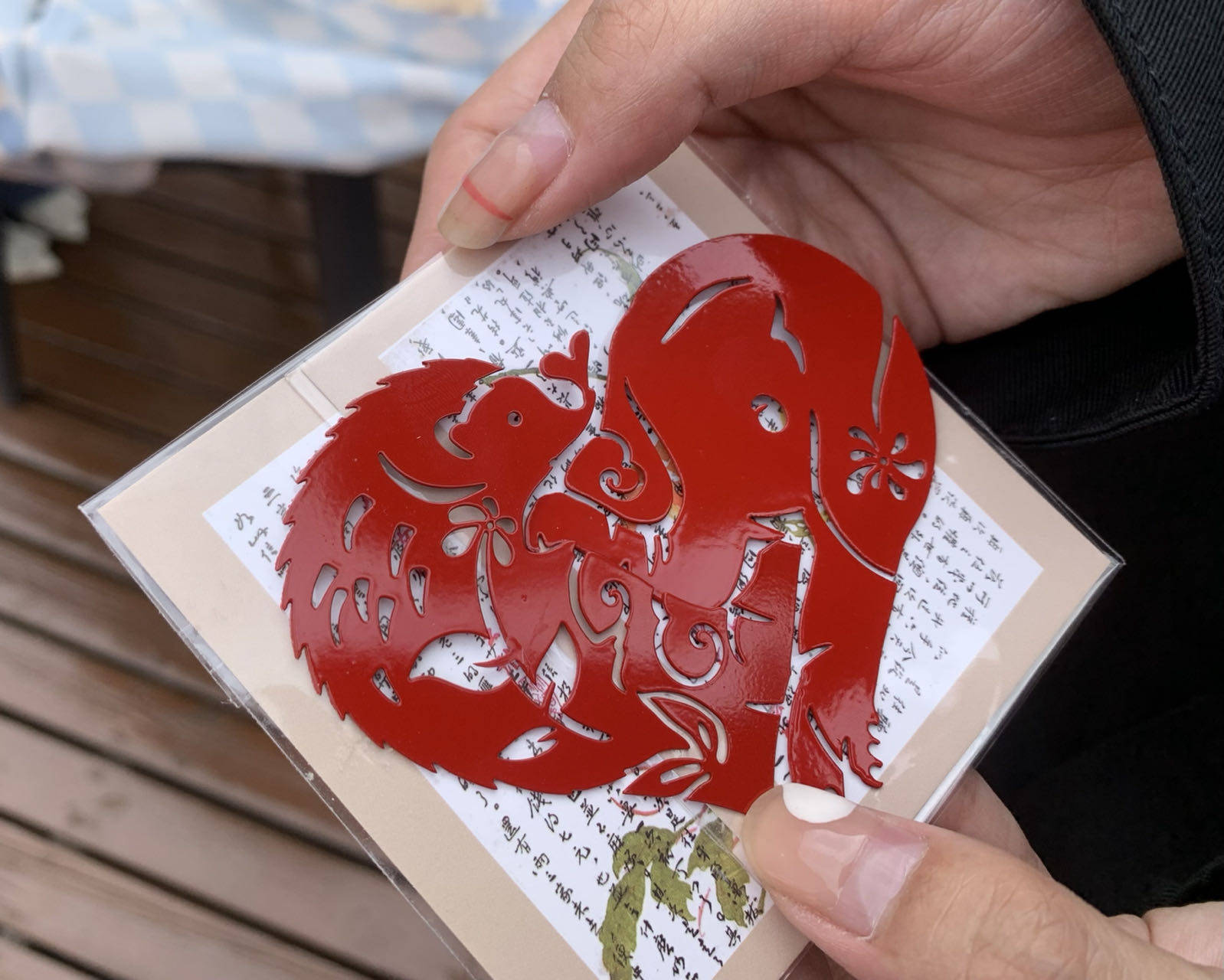 本次发布的系列产品和活动也主打创意与体验。坐落在朱屺瞻艺术馆对面的社区咖啡馆欧邑小站,推出了“会唱情歌的甜爱咖啡”。打开咖啡盒,根据提示设置手机,之后,只需把手机放在包装上就能链接到视听网站欣赏情歌。经过对顾客的前期调研,此次推出了5首呼声最高的情歌,部分包装封面还使用了AI作画,让人们在品尝香醇咖啡时,体验到视觉、听觉、味觉共情的丰富感受。上海多伦现代美术馆推出“I LOVE DOLAND”帆布袋,以渐变和具有光效应的字体设计突出“LOVE”的青春热情和活力气息。米丈堂艺术生活空间出品的爱心调味盘,由3D打印技术制作,调味盘中的滋味酸甜苦辣咸一应俱全,是有滋有味的生活,也是多姿多彩的浪漫。由D52艺术空间出品的“家”项链,几何设计搭建出“家”的轮廓,四方底座代表爷爷奶奶外公外婆,两根立柱代表着父亲母亲用爱呵护着孩子成长,光影下呈现的钻石和双翅,象征求婚和拥抱,项链意味着一起走过的日子。1927鲁迅与内山纪念书局制作的情侣书签,分开是“小白象”与“小刺猬”两个图案,而包装上也贴心使用了鲁迅先生与许广平女士之间的情书,这同样是写给岁月的情书。