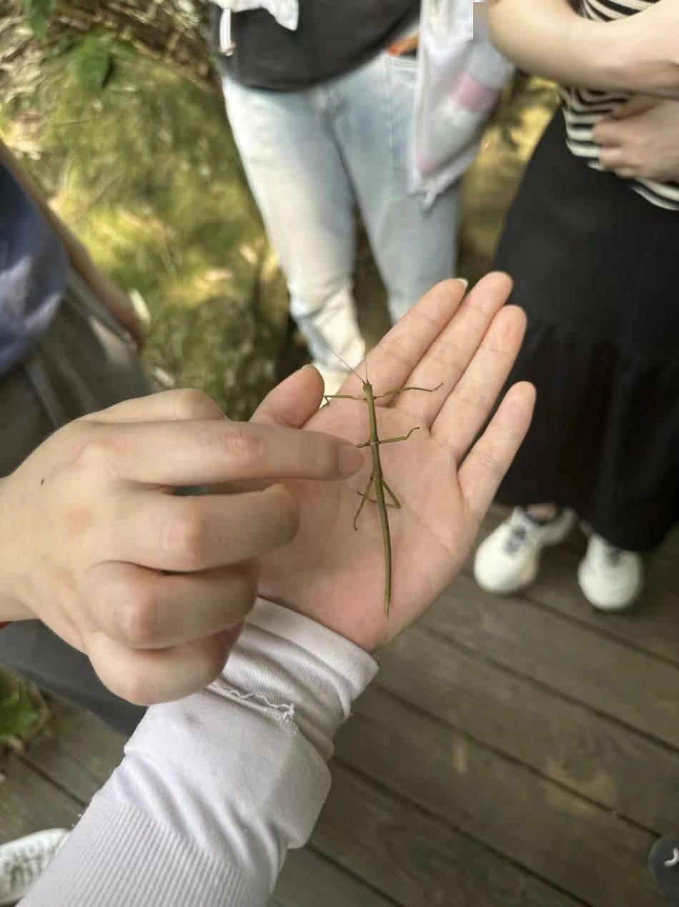 报道组在林间栈道上偶遇热带雨林“精灵”竹节虫 摄影:李傲