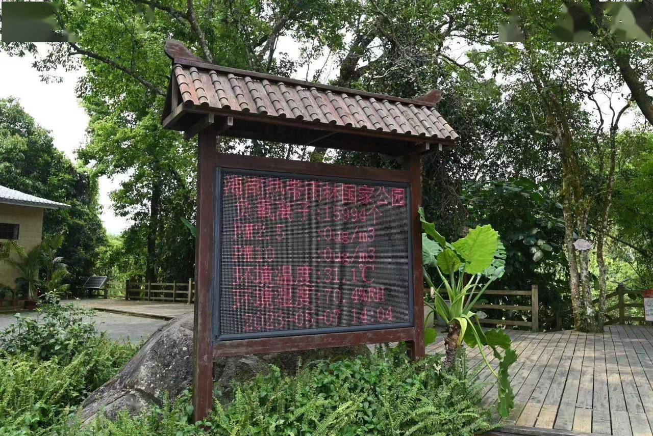 走进五指山所在的海南热带雨林国家公园,在栈道入口处的电子屏上实时显示“负氧离子每立方厘米15994个,PM2.5每立方米0微克”,沿着林间木栈道前行,群山叠翠、绿树成荫,流水潺潺、鸟鸣声声,空气温润清甜,仿佛穿行于绿色的海洋。