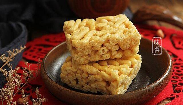 炒米饼,俗称“硬饼”,又叫粉酥,将大米翻炒至金黄,而后碾成米粉,和上糖胶及加入各地特色的配料(可以是芝麻、花生、鸡蛋、花生碎、椰丝等),用木制米饼模具碾压后敲出,放入烤炉中烤制而成。