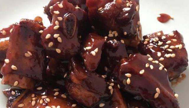 糖醋小排:小排放入加一大勺黄酒的冷水浸泡15分钟,可去腥味,浸好的小排和干山楂片放入砂锅里,加入两杯黄酒一杯醋,两片姜,一次加足量的水。大火烧沸30分钟,撇浮沫。转小火,一个小时,转入炒锅中,倒入老抽一大勺,醋两勺,中火烧至汤汁收浓。加足够的冰糖烧到汁浓,加少量盐调味。