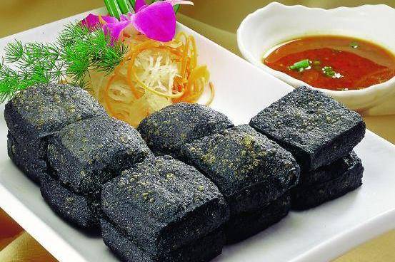 湖南臭豆腐:湖南臭豆腐又称臭干子,是湖南长沙市地方传统名吃之一,采取独特的工艺流程,采用祖传秘方,精制而成,源自长沙原汁原味的臭豆腐,其色、香、味俱佳,外酥里嫩,清香可口,奇特诱人、亦臭亦香,做工精细,口味极佳,是长沙臭豆腐的经典产品。