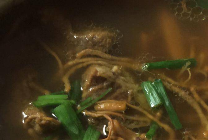 虫草花鲜美汤:先将虫草花泡水;墨鱼干泡水四小时切成丝备用;条排焯水备用;先将墨鱼干丝及姜片放入沙锅炖二小时;最将条排、虫草花和泡虫草花的水一起倒入沙锅继续炖煮;大约炖二小时后,加入适量的盐、黄酒炖5分钟,放入葱花即可。这道美食非常养生,喜欢的朋友不要错过了。