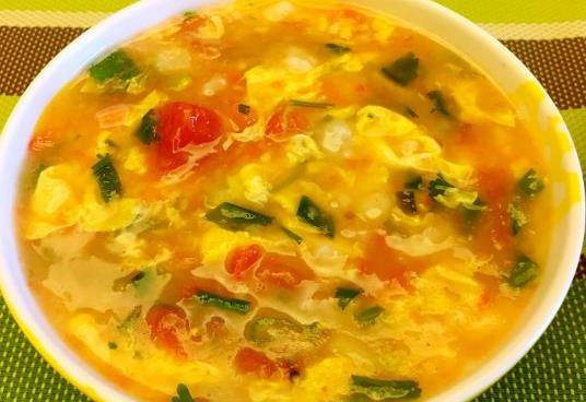疙瘩汤,把面粉盛在容器里,用手沾少许水,洒在面粉上,然后拌匀,再沾水洒在干面粉上拌一下,如此类推直到面粉全部拌成小疙瘩,葱花切好备用;西红柿切成丝,锅内入油,爆香葱花然后放入萝卜丝炒二分钟,倒入热水待水开后把面疙瘩倒进去,用筷子搅拌否则容易粘连,再次开锅后再煮几分钟,放入少许盐调味,就可以盛出来品尝了,香鲜美味。