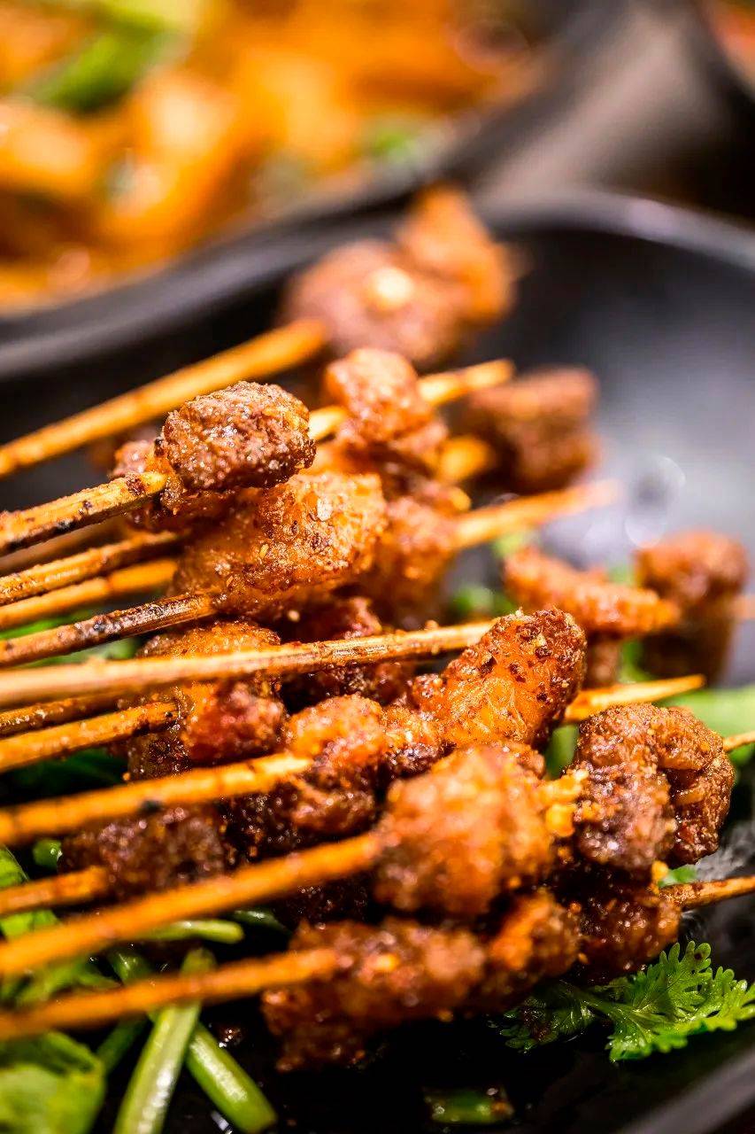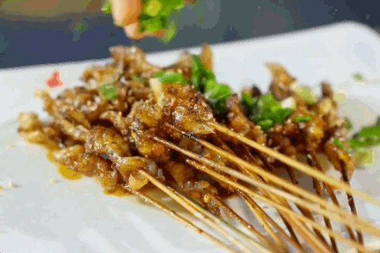 最绝的还是宜宾人对猪头的处理,从鼻到口再到喉,每一个宜宾烧烤师傅都是擅长解“猪”的庖丁。牙梗是猪的上颚软骨,外形很像一阶阶的梯子,也被称为猪天梯,口感脆硬,嘎吱嘎吱嚼起来十分脆爽。花心是猪咽喉部位,切成三角形穿起来,脆脆的口感,特别有嚼头。