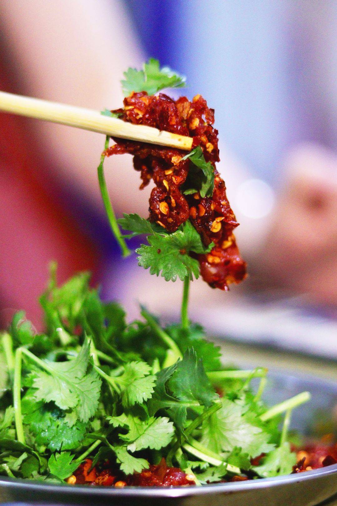 猪鼻筋的口感有些类似茶树菇,一条一条的纤维紧密连接,口感比毛肚脆嫩,比板筋劲道。宜宾人对于猪鼻筋的要求很高,不能是冻货,一定要是新鲜货,若是冻货,则有软绵的口感,一口便能吃出。