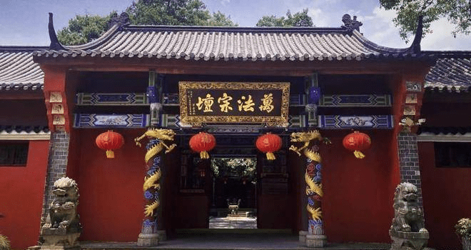 万法宗坛内的这两棵参天大树是罗汉松,树龄近千年,相传为南宋高宗和第三十二代天师张守真所植,一雄一雌。雌树会结果,可以泡水饮食,清神益智。