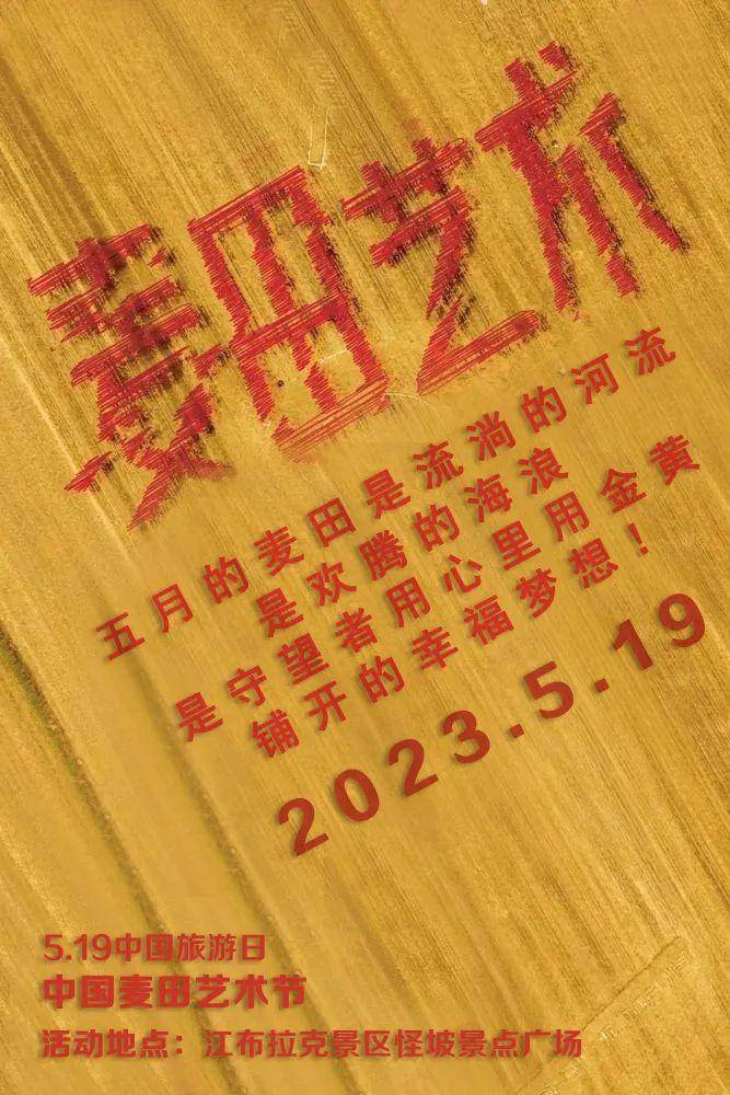 5月19日上午,“美好中国·幸福旅程”2023年“5·19中国旅游日”昌吉州主会场启动仪式暨江布拉克中国麦田艺术节启动仪式将在江布拉克景区拉开帷幕。同时,还将进行“相约昌吉”摄影文化旅游节颁奖、昌吉州2023年导游(讲解员、推介人)大赛颁奖和“昌吉礼物”评选颁奖仪式。