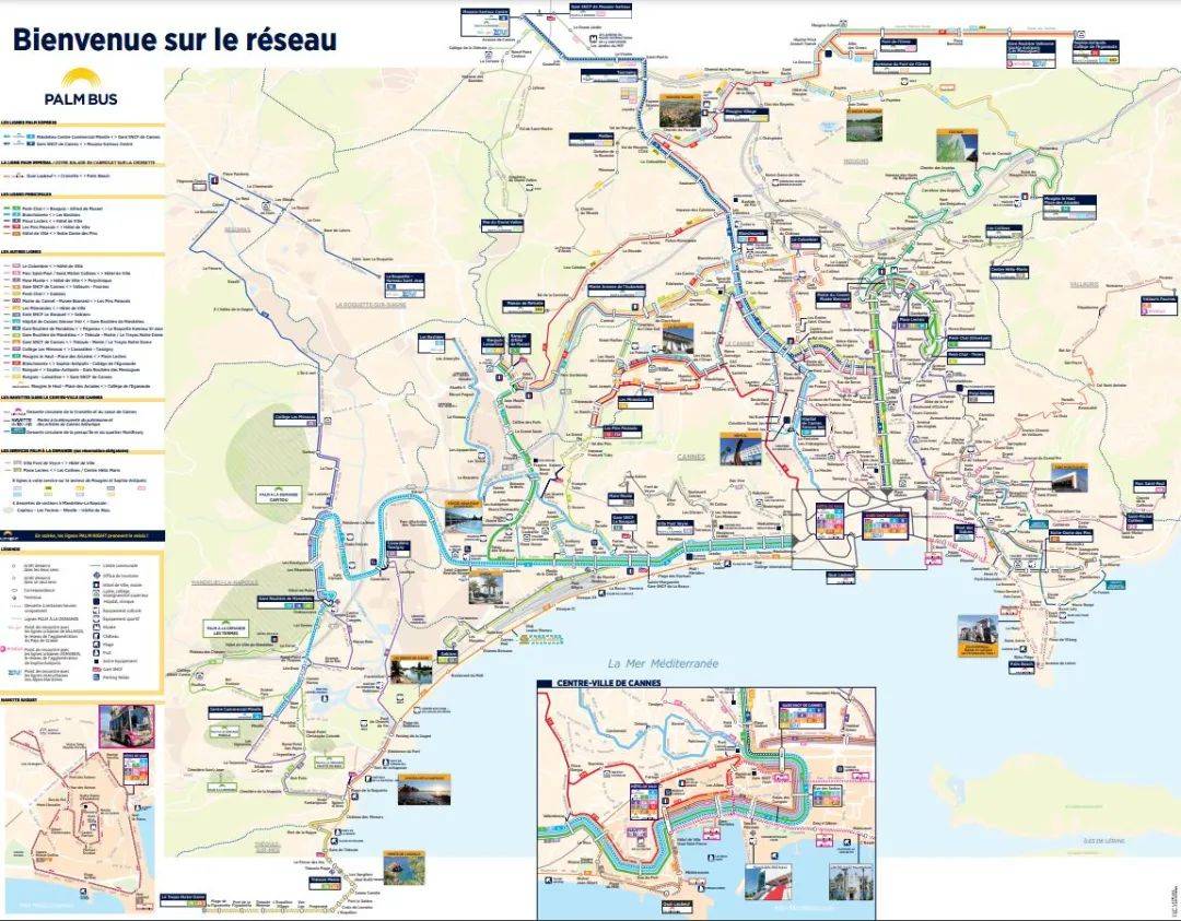戛纳的公共交通很发达,Palm Bus三十条公交线路覆盖了市内的景点,目前的单程票是1.5欧元,10次票12.5欧元。14岁以下的儿童免费乘坐。