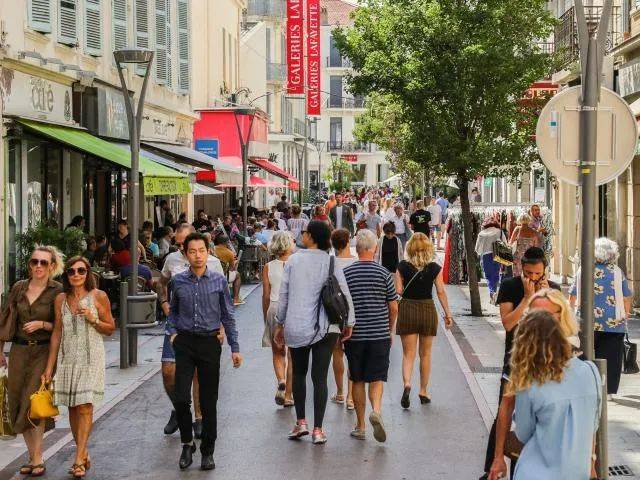 一条有着典型的戛纳建筑风格的橱窗购物街,这里分布着大大小小的平价品牌店面,也能找到可丽饼、冰淇淋等街头小吃。