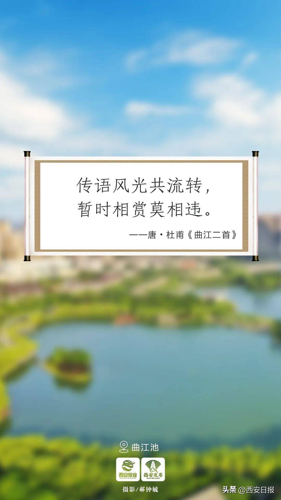 唐长安城的曲江池两岸,楼台起伏、宫殿林立,绿树环绕、水色明媚。大诗人李白、杜甫、白居易、李商隐、刘禹锡等都曾到此一游,留下脍炙人口的名句。现在,即便是在曲江池短暂停留,美景依然让人流连忘返。