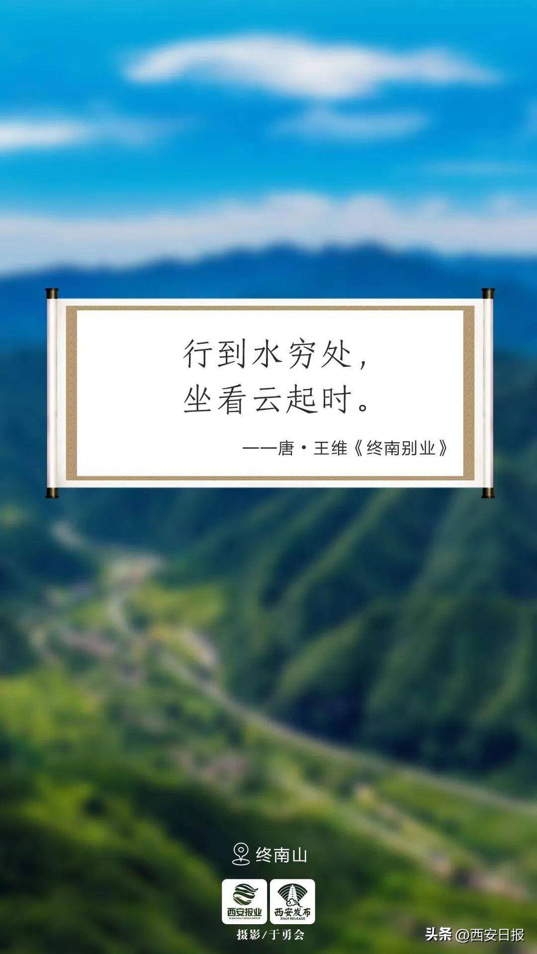 巍巍终南山紧靠着长安都城,晚年的王维曾隐居于山中,并将悠然自在深刻描绘,从而留下了这千古名句。现如今,终南山是西安人“最近的远方”。那份自然的闲适与生活的向往,始终寄托在这绿水青山之间。