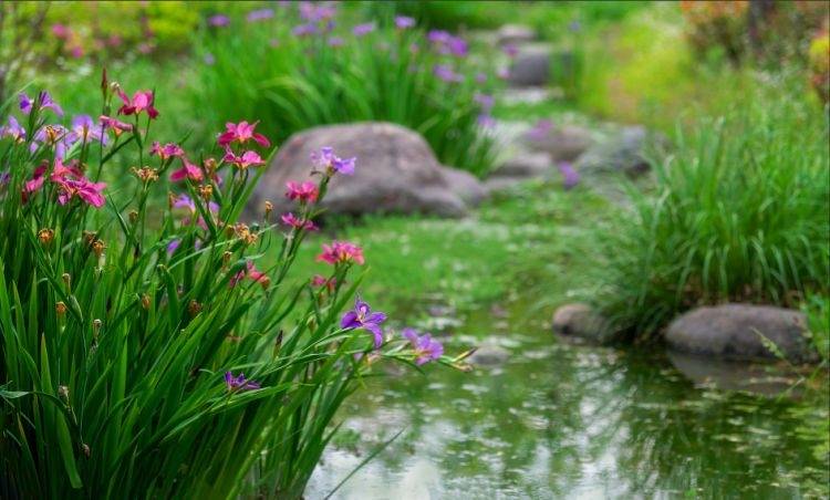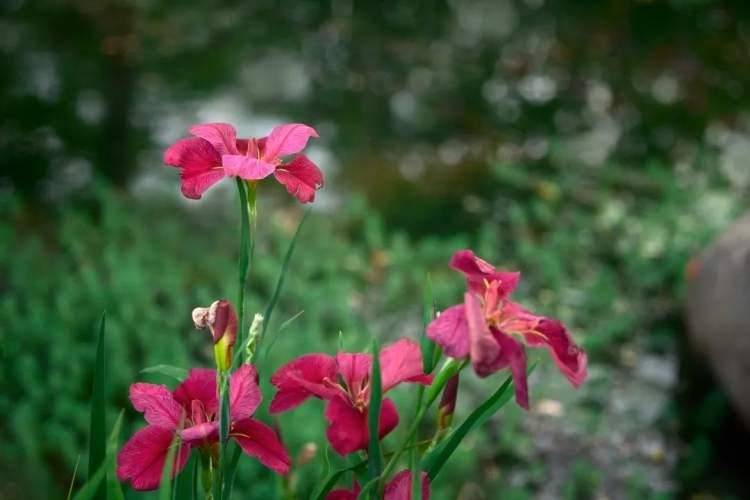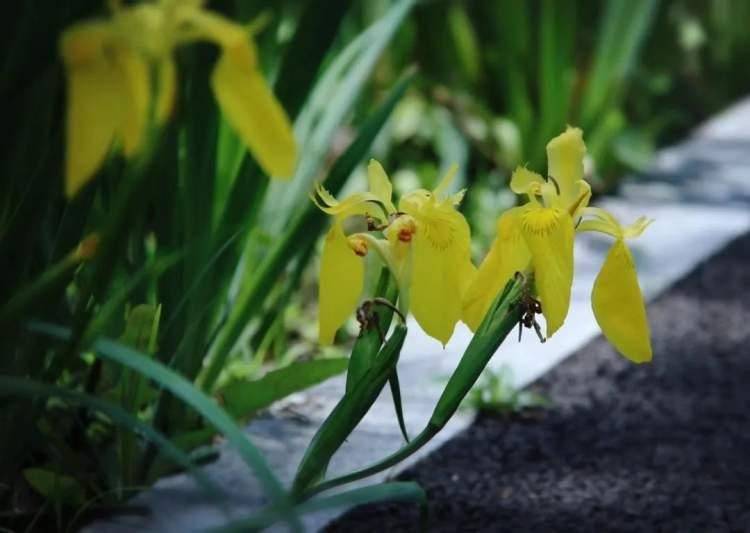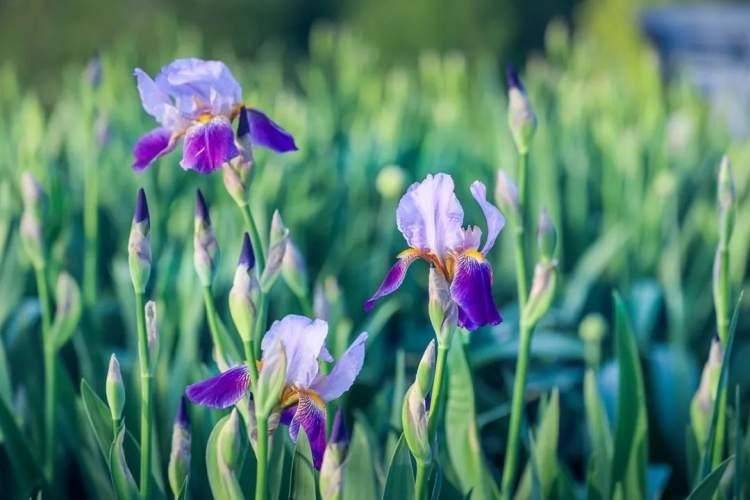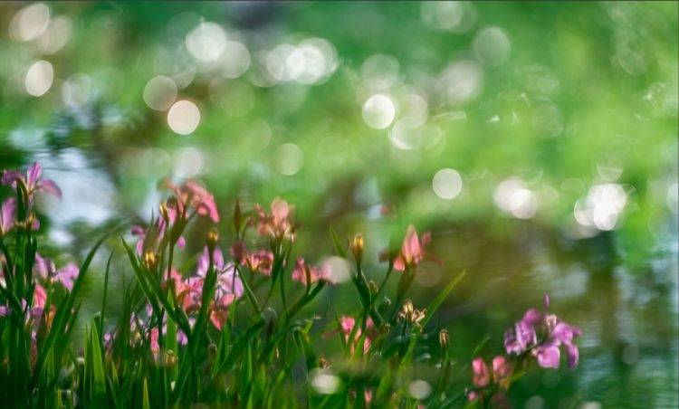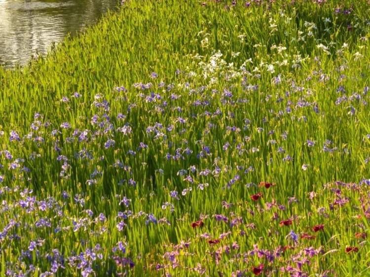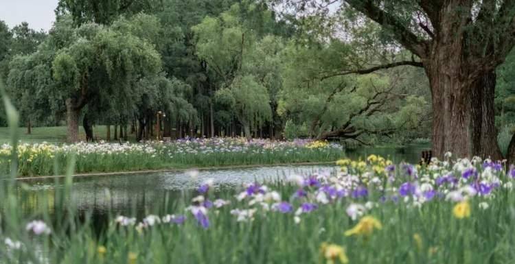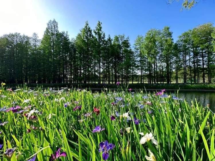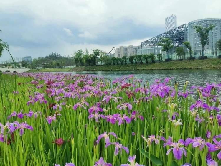 河岸与花田间,朵朵鸢尾迎风绽放
