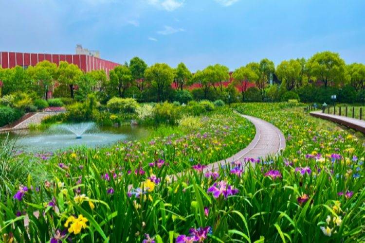园内鸢尾种植面积约3000平方米,主要依托公园水景特色进行布置。展示鸢尾品种近50个,主要有路易斯安娜鸢尾、花菖蒲、西伯利亚鸢尾、德国鸢尾等,包括蓝、白、紫、粉、黄等不同色系。