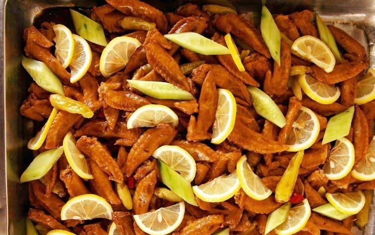 图为浙江农林大学东湖食堂里的柠檬烩鸡尖。