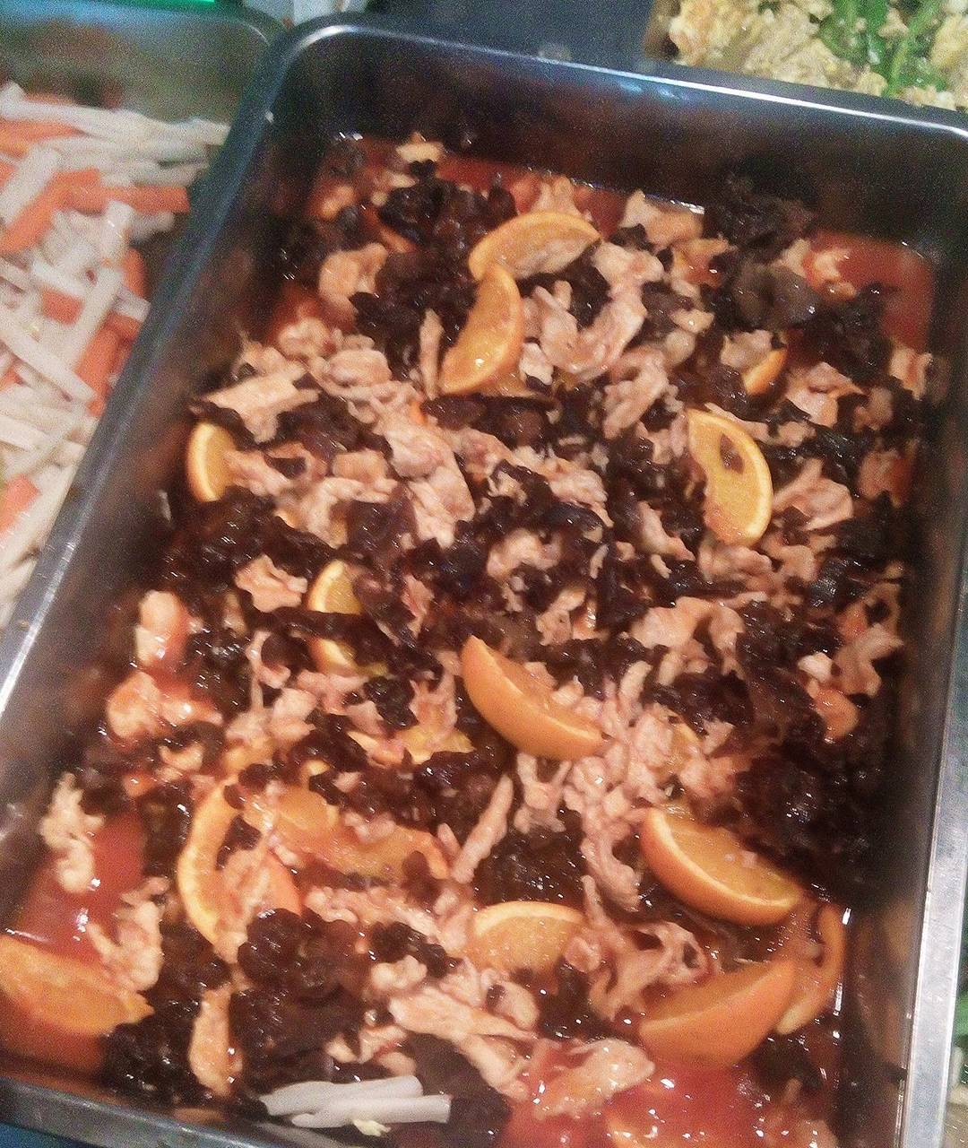 山东一高校食堂内惊现“橙子木耳炒肉”菜品,吸引了众多大学生排队购买。