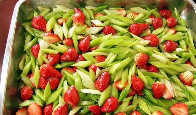 此前有不少高校食堂出现“黑暗料理”,图为浙江农林大学东湖食堂里的西芹炒草莓。