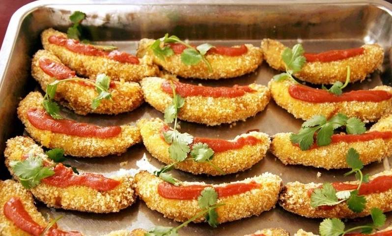 图为浙江农林大学东湖食堂里的脆炸香蕉配番茄酱。