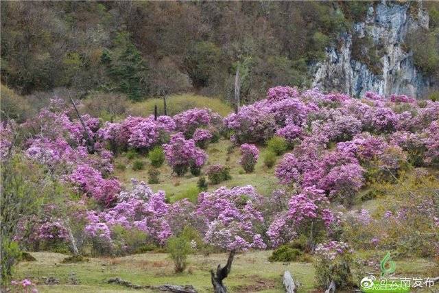 一丛丛、一树树的杜鹃花直铺到天际,新绿的草地、斑斓的野花,还有葱郁的森林与之相映,此时可以倚一棵树,或躺在花下,静听大自然低语,醉入浪漫山野,让思绪飞至云霄。