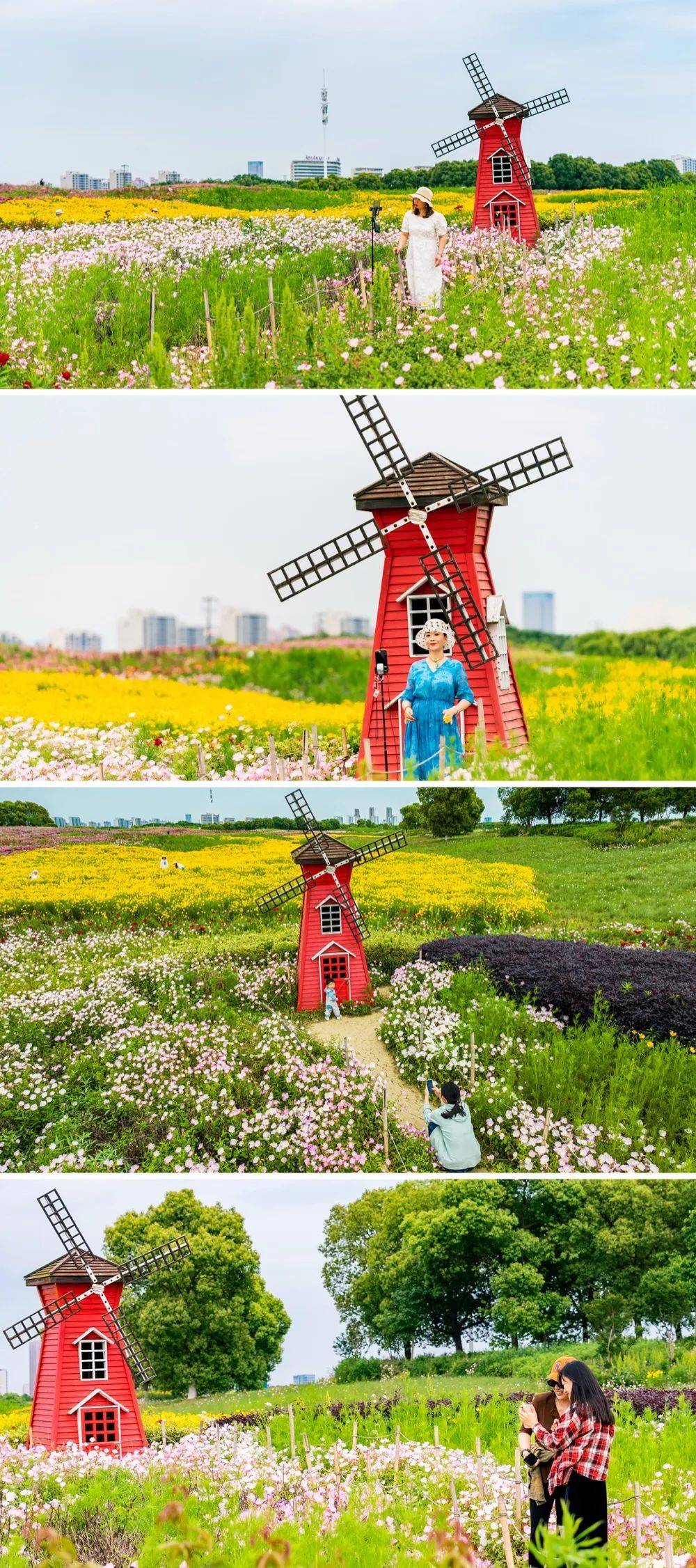花海中间的欧式小风车抓住了每一位前来打卡小姐姐的目光,谁不想在这样的风车旁留下倩影呢?