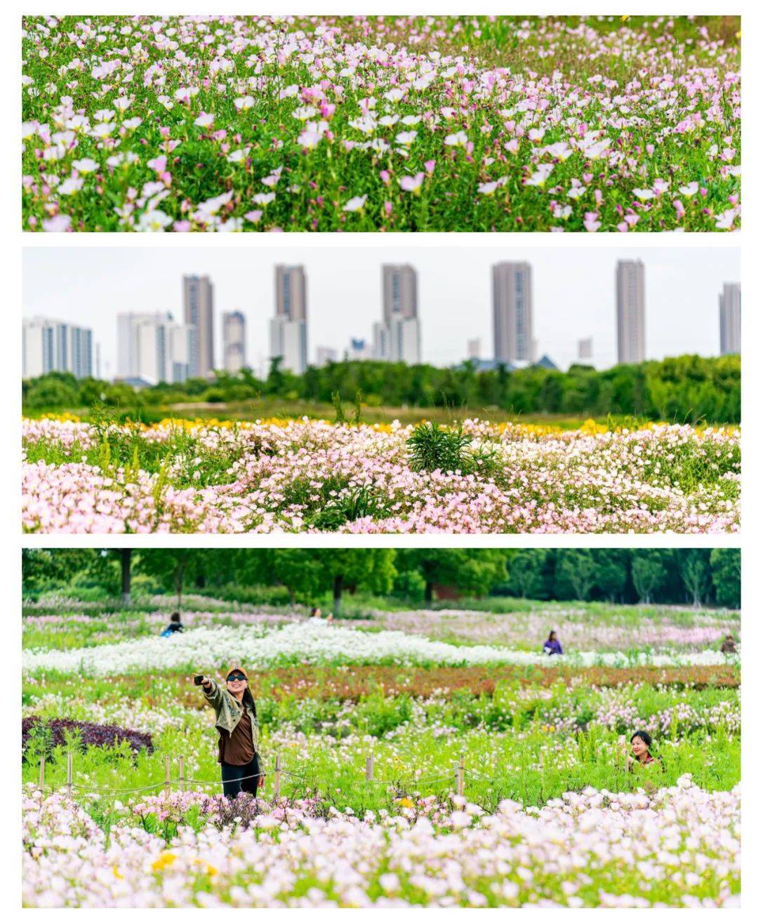 70000多平,月季、蔷薇花、波斯菊、虞美人……各种花儿竞相开放,是这个季节里苏州湾体育公园的专属浪漫。