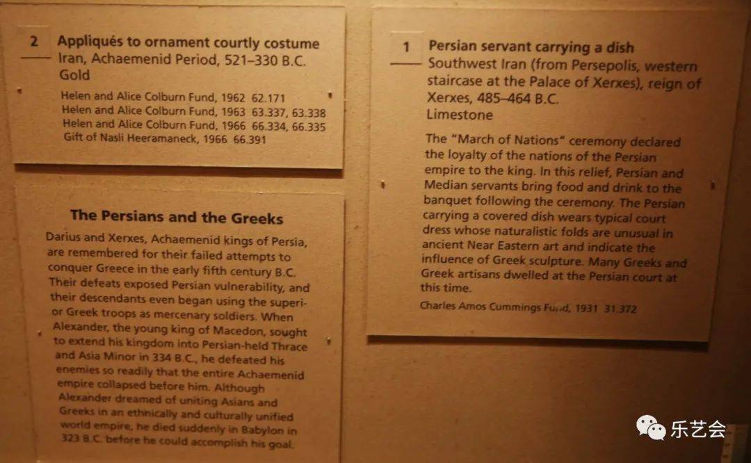 馆藏有许多代表美索不达米亚、波斯、黎凡特和安纳托利亚艺术的重要物品。其中最突出的是拉加什统治者古迪亚的头像,一组来自尼姆鲁德和尼尼微亚述宫殿的浮雕,来自巴比伦游行道路上的一只狮子的釉面砖,精美的陶瓷,以及来自首都波斯波利斯的浮雕阿契美尼亚帝国。