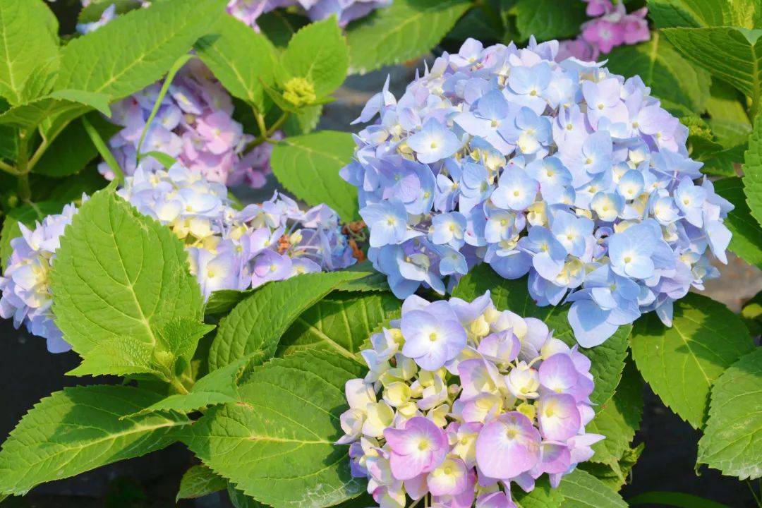 移步易景,除了邂逅浪漫的月季花道,还有如梦如幻的绣球花海静待相拥,亦是另一颗抢镜的“珍珠”,成为了又一道亮丽的风景线。