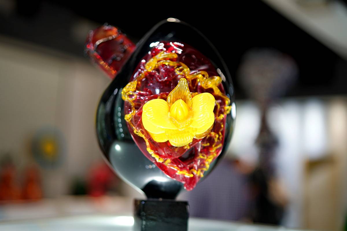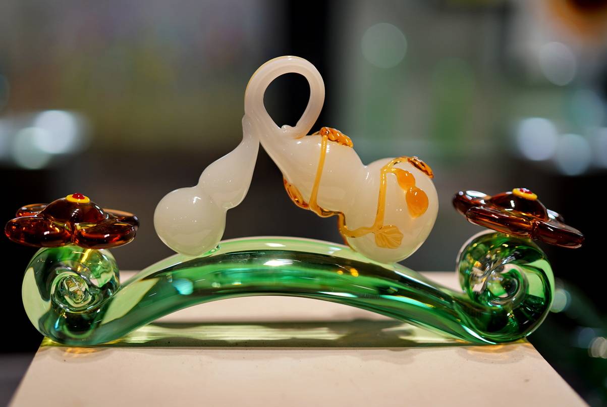 而上了二楼,才知道什么叫精品,才知道什么是博山琉璃的代表与精髓,最先看到的竟然是国宴用的琉璃,而且不止一次出现在重大场合,有实物,有照片,但是由于网规,不能说太多了,图片也不发了。