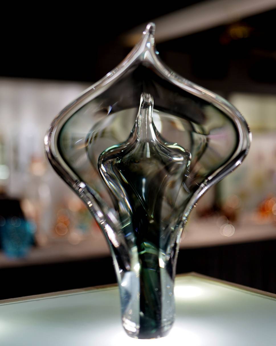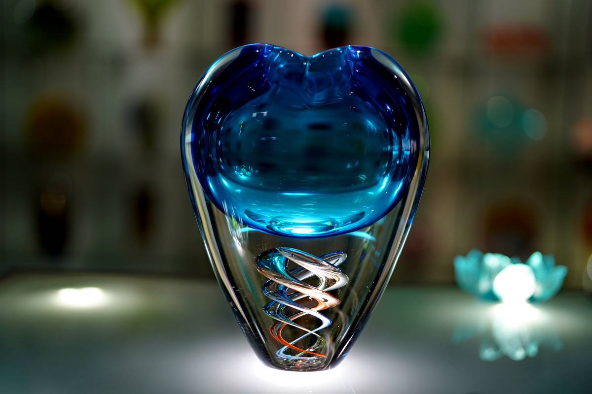 进入产品展示厅,就更加不淡定了,各种造型的花瓶、器皿与艺术造型,真是让人眼花缭乱,没有想到琉璃的世界这么精美。