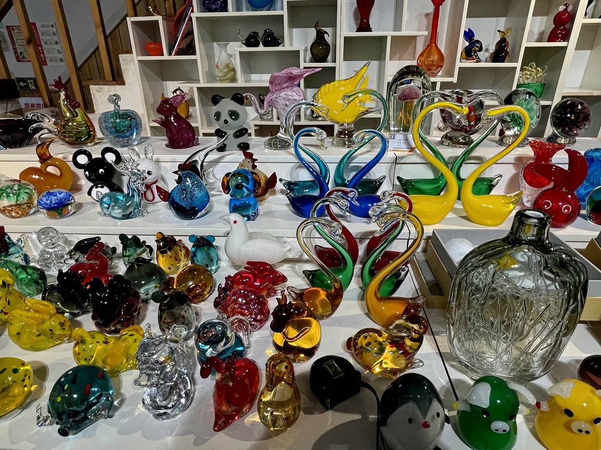 我想起去意大利威尼斯水城游玩,好像琉璃也是当地特色产品。导游带领我们参观了一家琉璃作坊,看师傅的表演和参观样品室,厂家还特别要求不能拍照,似乎很神秘的样子。