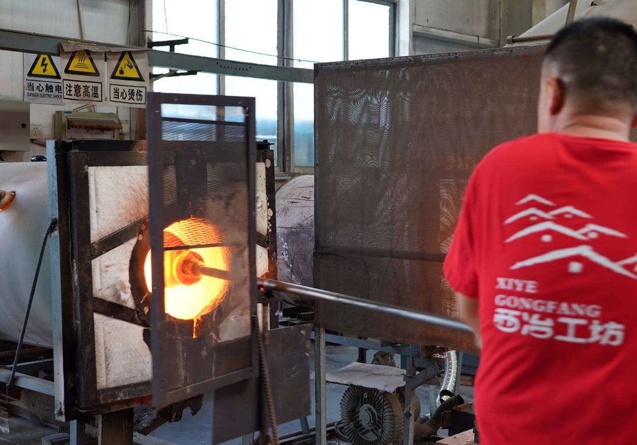 朋友带我来到位于博山的“西冶工坊”,这是一家大型琉璃生产厂。厂长在门口等着迎接央视记者,要一位小姑娘陪同我们参观,工厂可以随便看。