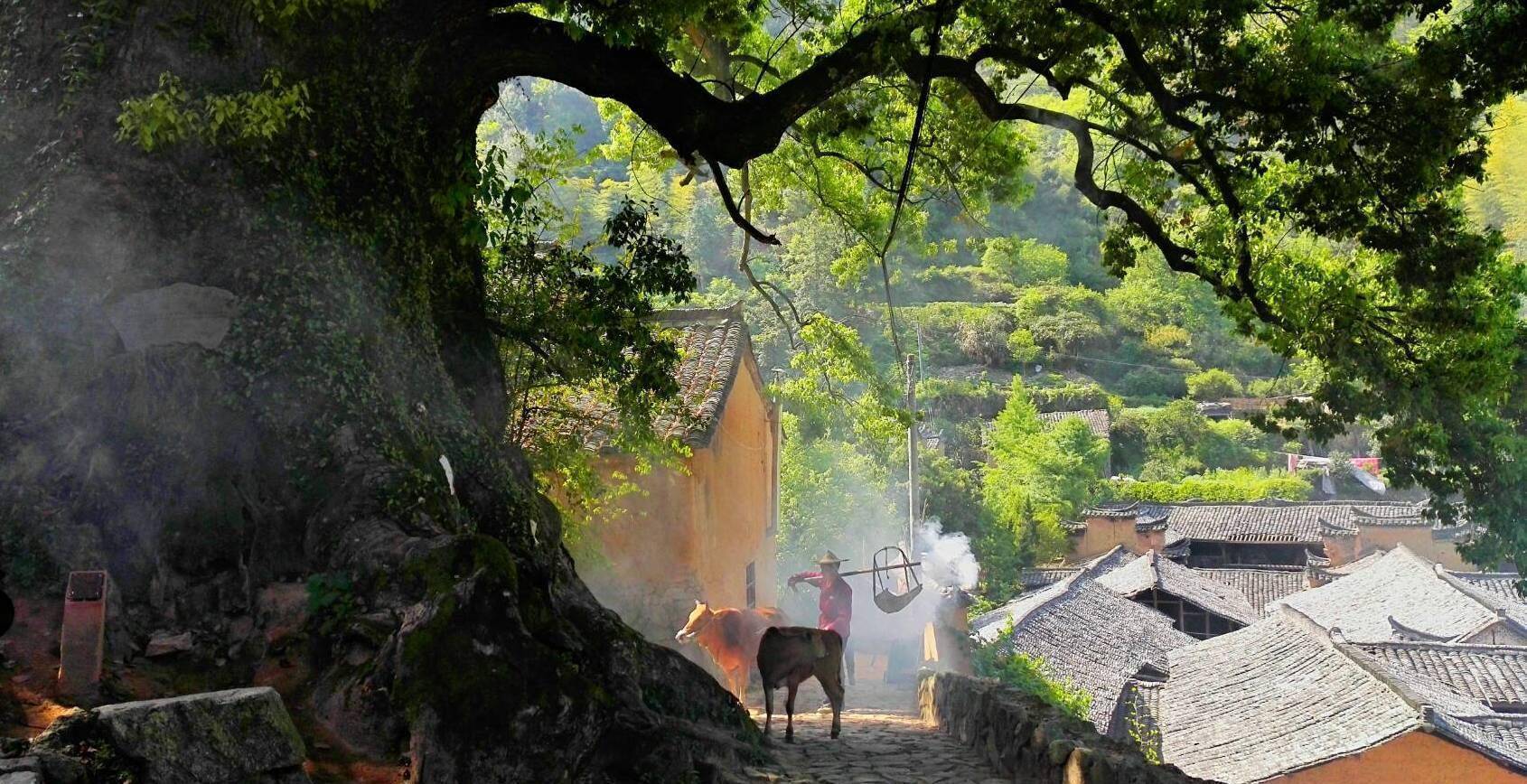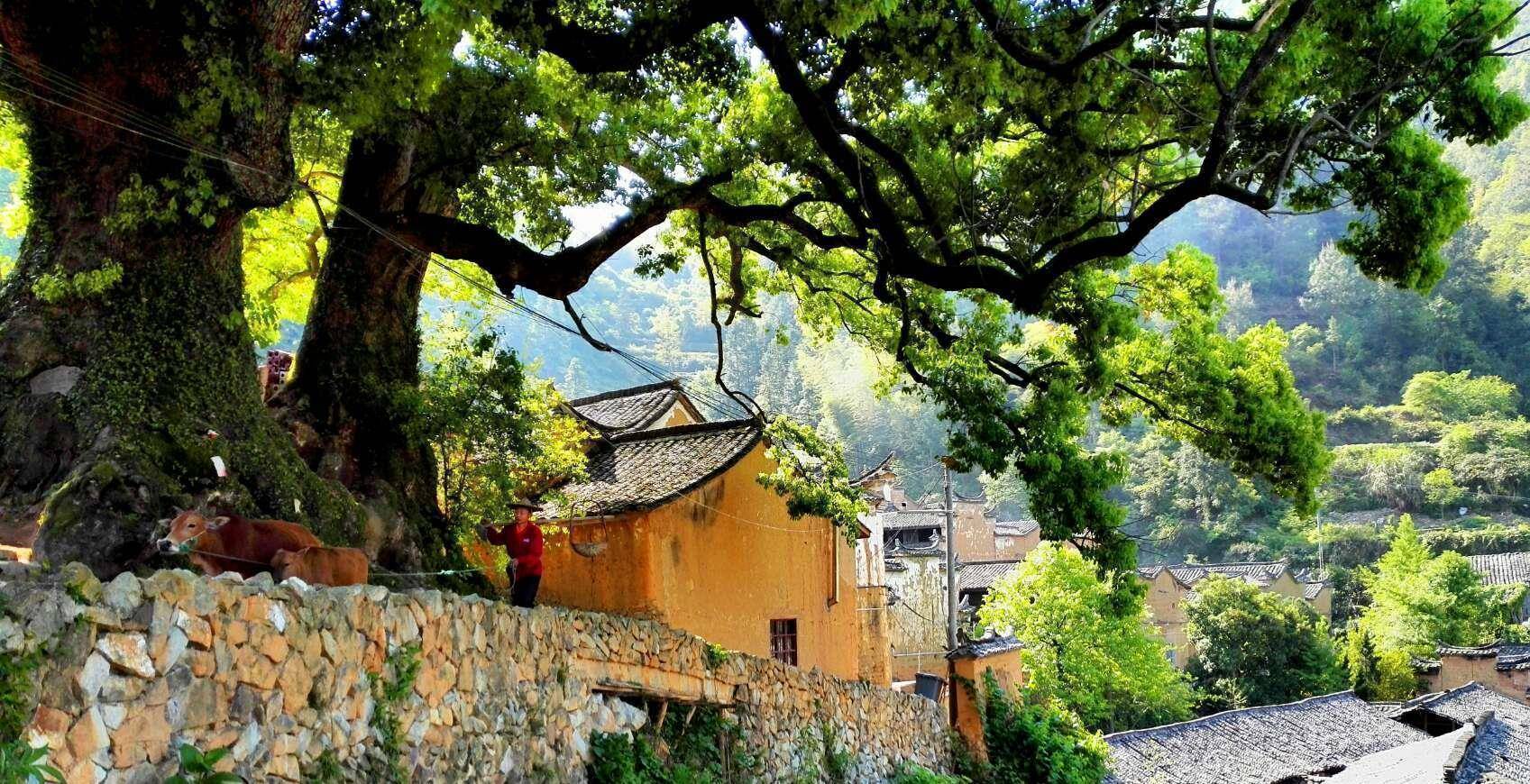 根据县志记载,杨家堂村内有三颗交叉的樟树,最早的时候村子也叫樟交堂,后来改名为杨家堂村。在樟树旁边还有个小神龛,供奉着类似于土地、城隍的神仙,在松阳县附近的古村内都是较为普遍的行径。村内有80多户人家,是宋姓氏族的聚集地,最早可以追溯到宋濂的十一代玄孙迁徙至此。主要的经济来源是高山茶叶和水果谋生。前往杨家堂村的路上满地都是柿子树,基本上无人采摘,安静的生长着,慢慢成熟,再安静地回归大地,就像杨家堂村一般,整个村落异常安静。