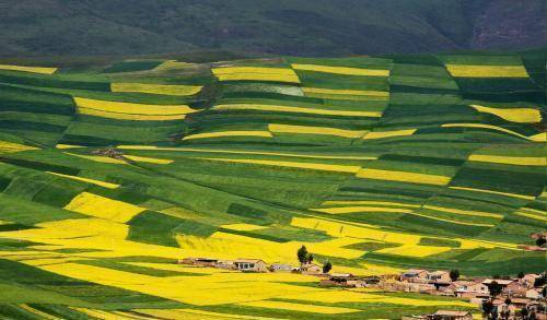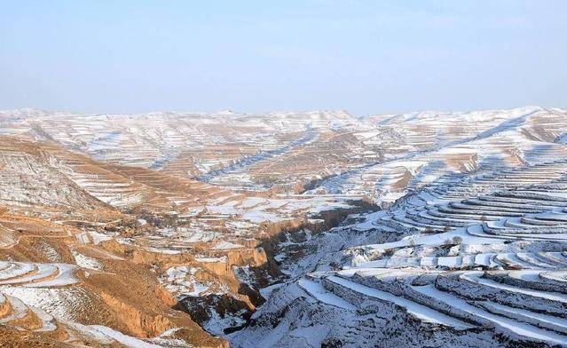 听到黄土高原,你一定会想起“地表沟壑纵横,支离破碎”这句话来,事实却是如此。黄河从这里蜿蜒东去,道路也百转千回。神奇的是,它的顶部却是大大小小的平地,加上有厚厚的黄土覆盖,层层叠叠,颇有梯田的壮美。春有百花,风姿各异,美叶新出,映射出层层渲染的效果;夏有绿意,海拔较高的陇山正位于夏季风的迎风坡,降水颇多,呈现一片生机勃勃的景象;冬有白雪,圈圈团绕似年轮。