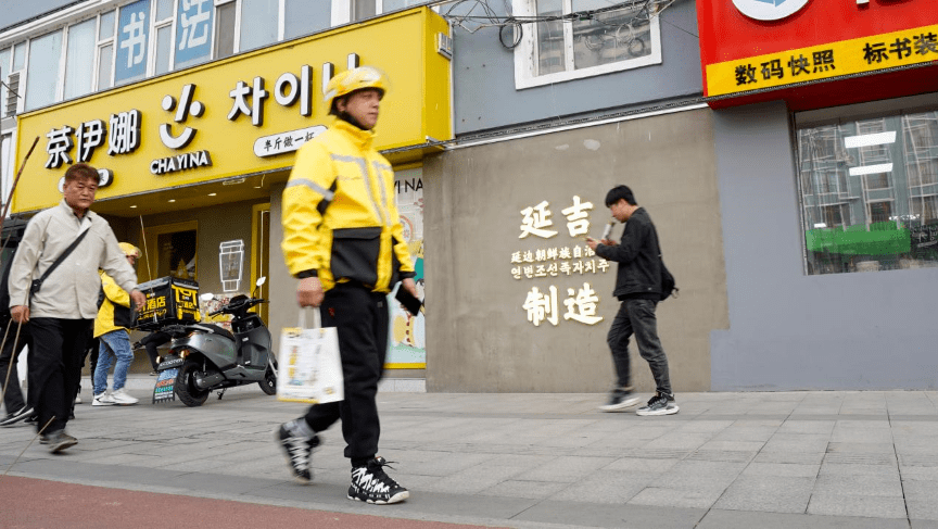 没用多久,茶伊娜就成了社交媒体上的"景点"之一,每天都有大量游客以店门口的网红墙作背景,举起“延吉”字样杯套的茶伊娜咖啡,咔咔拍照。甚至是临走的游客,也会点个外卖到机场和高铁站,然后提着上车。