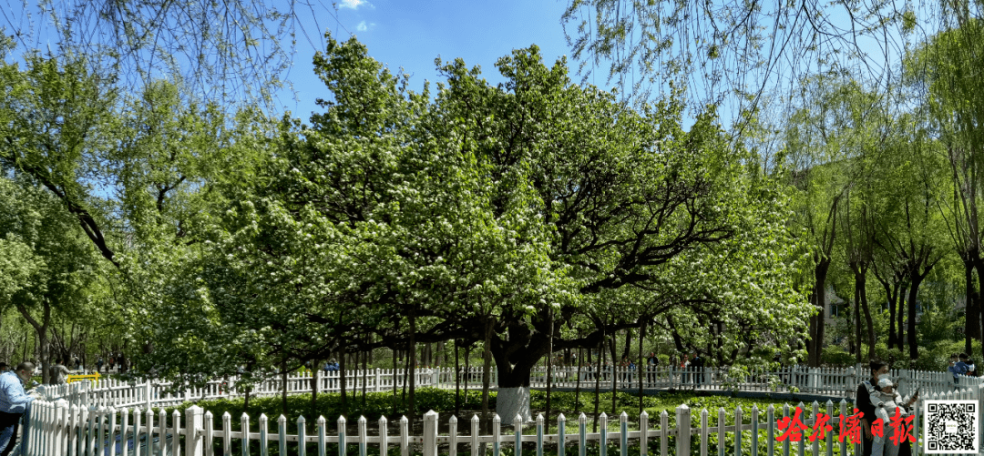 要说哈尔滨的“公园明星树”,道外区古梨园内的大梨树,绝对算上一个。树高12米,胸围2.55米,今年它已经有137岁了,是我省境内有记载的最古老的野梨树。一树盛放的白梨花,惊艳了哈尔滨的初夏,不仅火出圈,还成了网红打卡地。